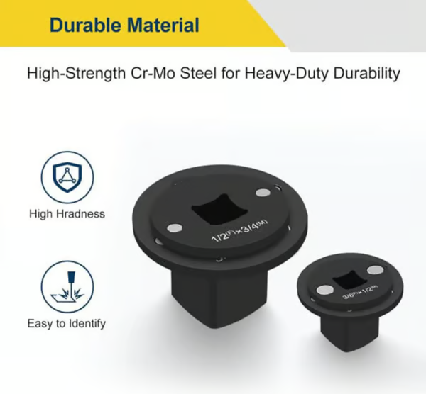 - Durable Cr-Mo Steel with Laser Markings: Constructed from high-strength Cr-Mo steel for superior durability and impact resistance, the drive ratchet adapter set are coated with rust-resistant black phosphate. Laser-etched size markings provide quick and accurate identification, ensuring efficiency during demanding tasks.